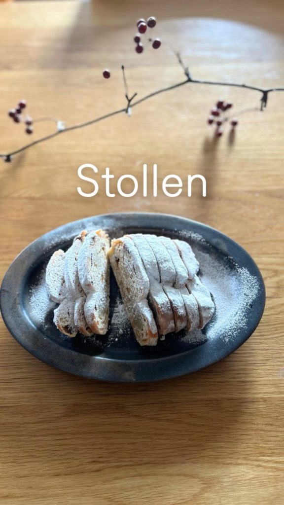 ドイツ発祥のスパイスたっぷりのお菓子、シュトーレン。たっぷりのドライフルーツ+ナッツを生地に練り込み、バターと粉砂糖で仕上げる、クリスマスを待ちながら少しずつ楽しむお菓子です。